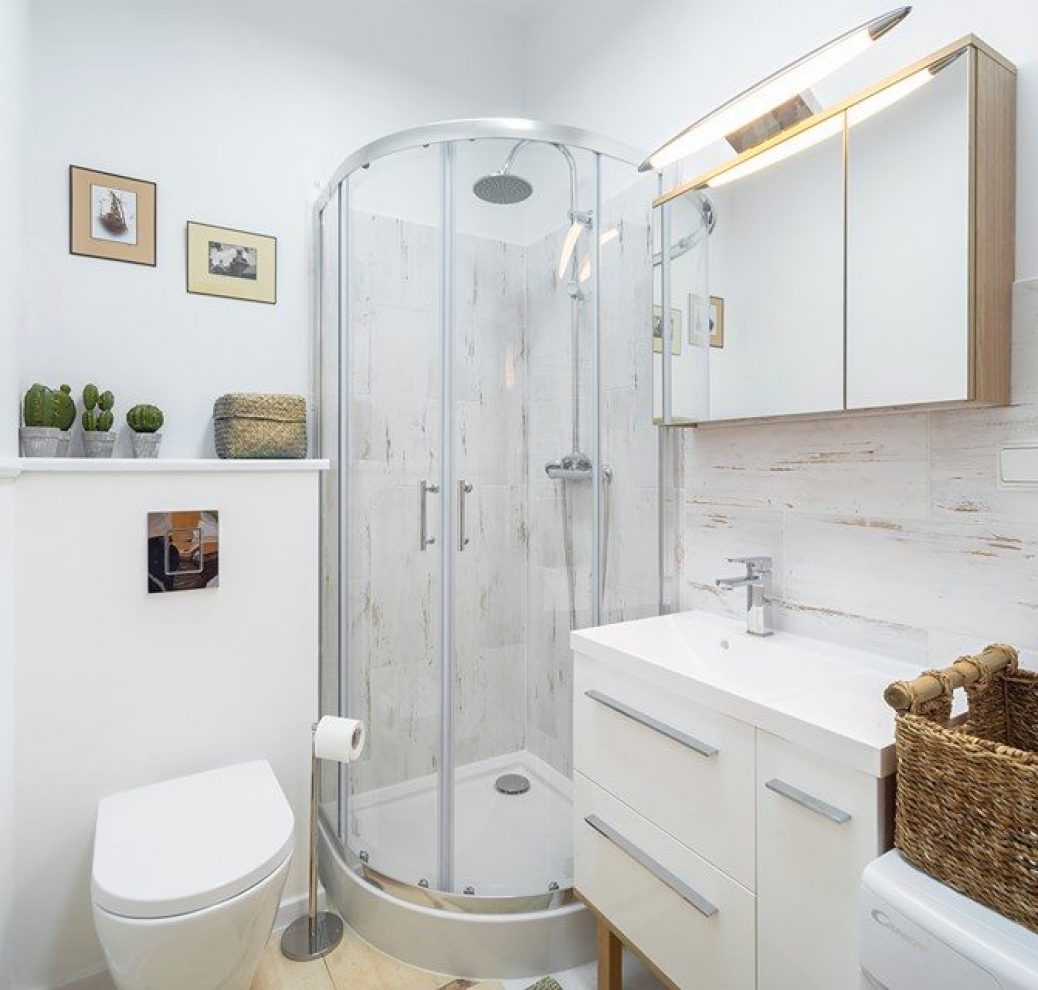 -Łazience składa się z: prysznic oraz pralka.
