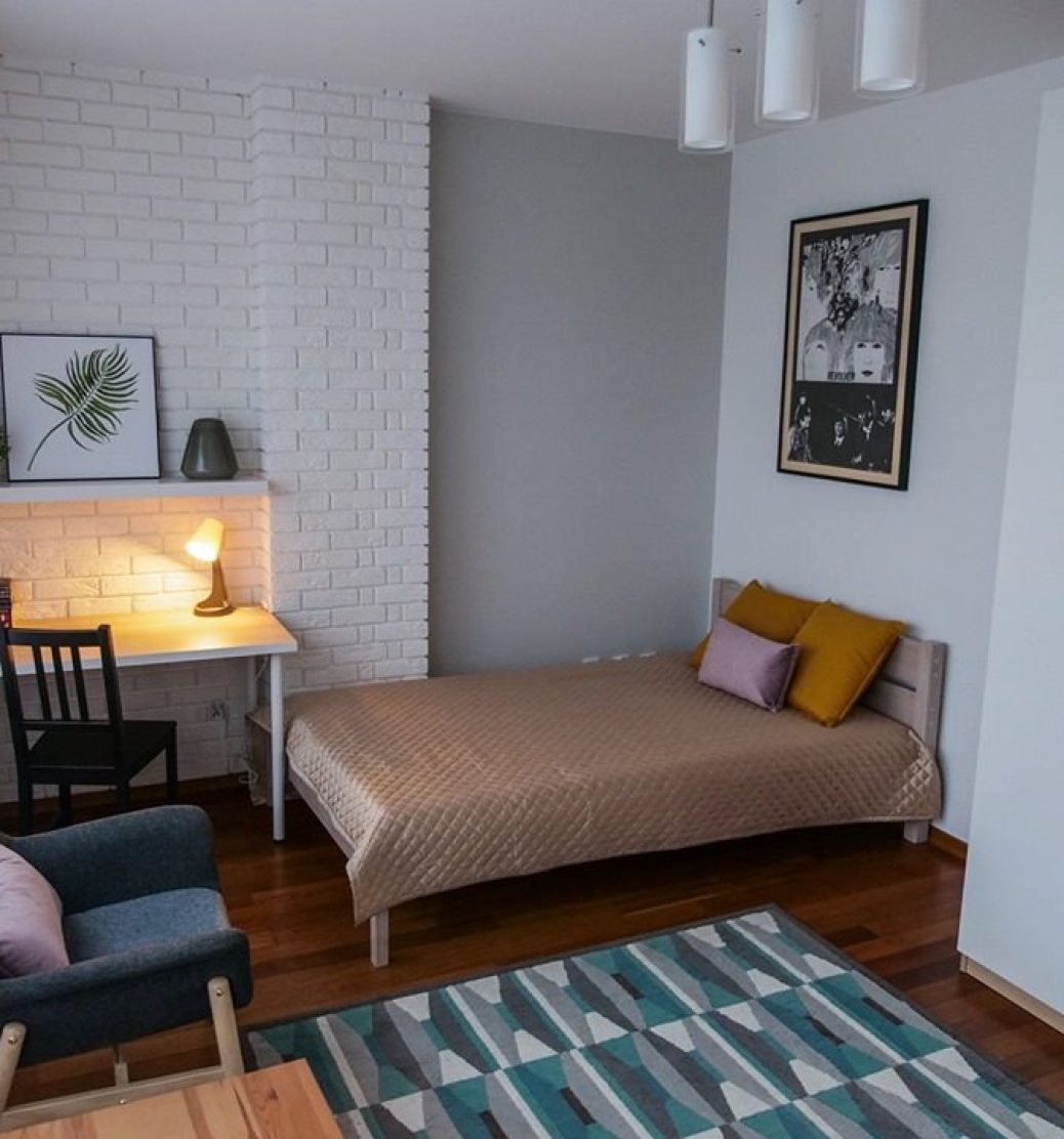 POKÓJ 17 M. KW.: dwuosobowe łóżko 140×200 cm, robiona na wymiar szafa wnękowa o wym. 280 x 260 cm, komoda, duże biurko, półka pod telewizor, gniazdo RTV, zaciemniające zasłony, etc.;