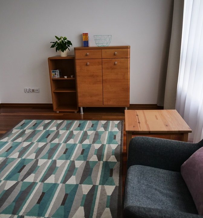 POKÓJ 17 M. KW.: dwuosobowe łóżko 140×200 cm, robiona na wymiar szafa wnękowa o wym. 280 x 260 cm, komoda, duże biurko, półka pod telewizor, gniazdo RTV, zaciemniające zasłony, etc.;