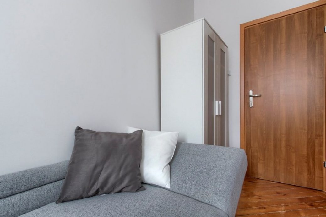 Pokój jest w pełni umeblowany, biurko, szafki.