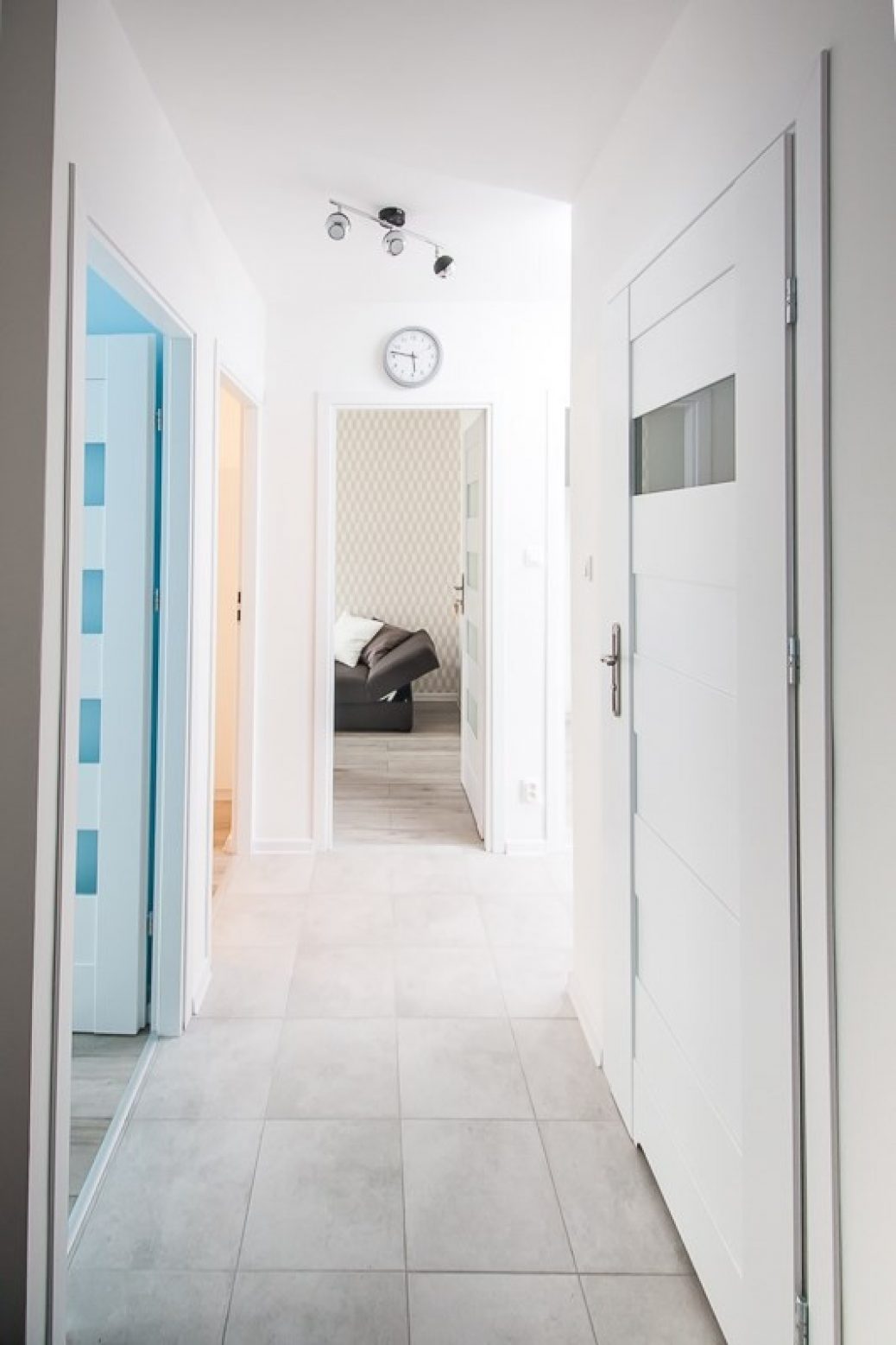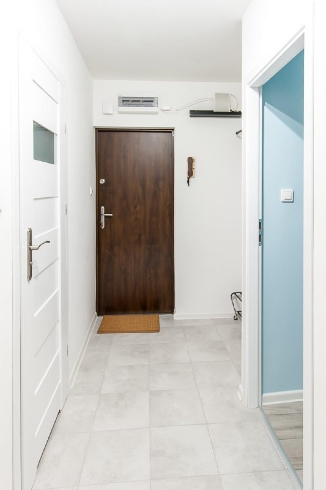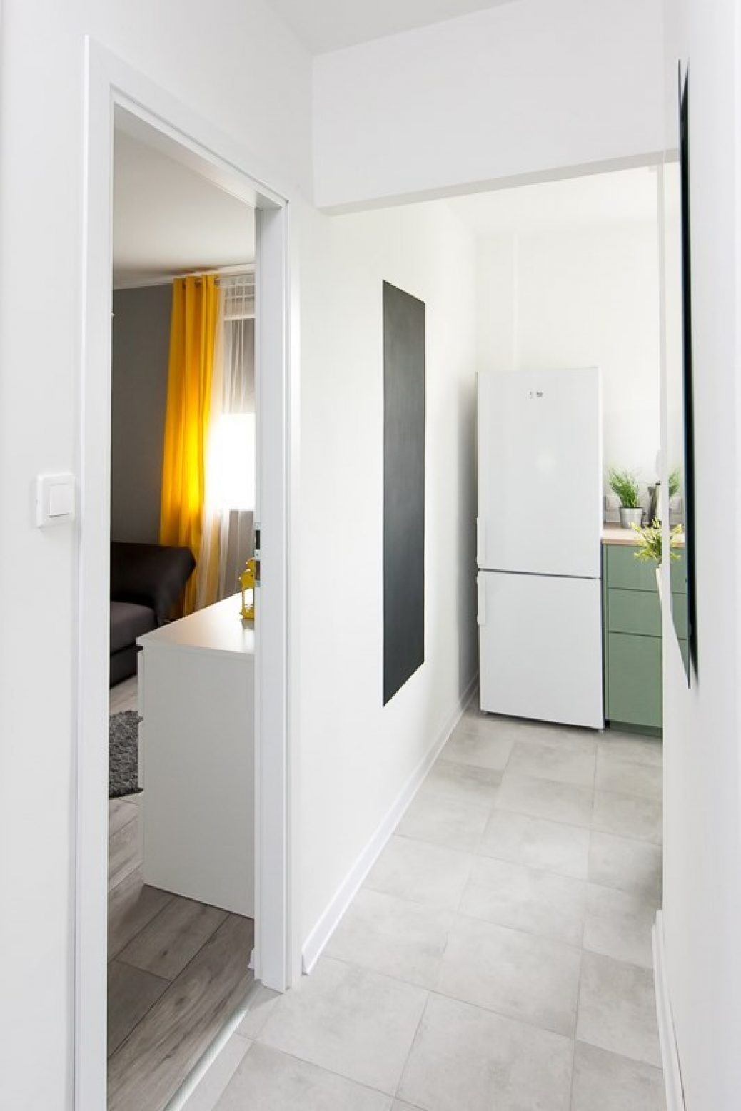 Dodatkowo w wyposażeniu mieszkania są deska do prasowania, odkurzacz, mop oraz zestaw zmiotka z szufelką.