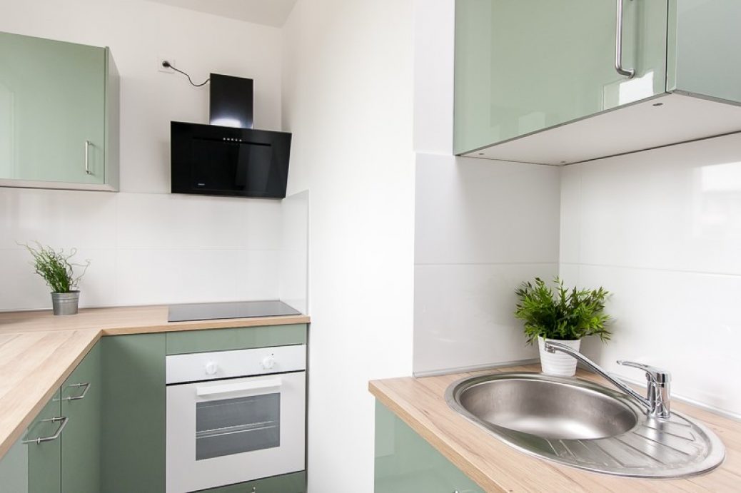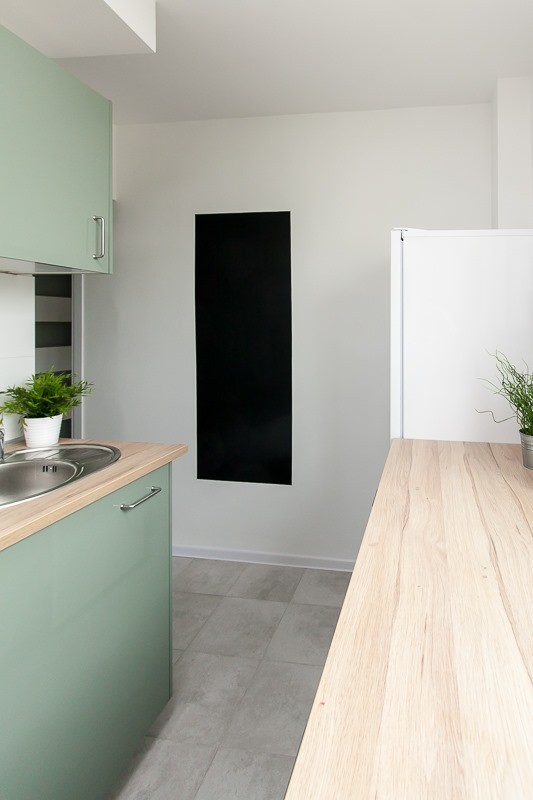 KUCHNIA: Jasna, z dużym oknem. Jest w niej nowoczesne wyposażenie: 3-strefowa płyta indukcyjna, okap, piekarnik, lodówko-zamrażarka, czajnik, podstawowe wyposażenie (garnki, sztućce, naczynia, deski do krojenia, noże i inne przybory kuchenne).