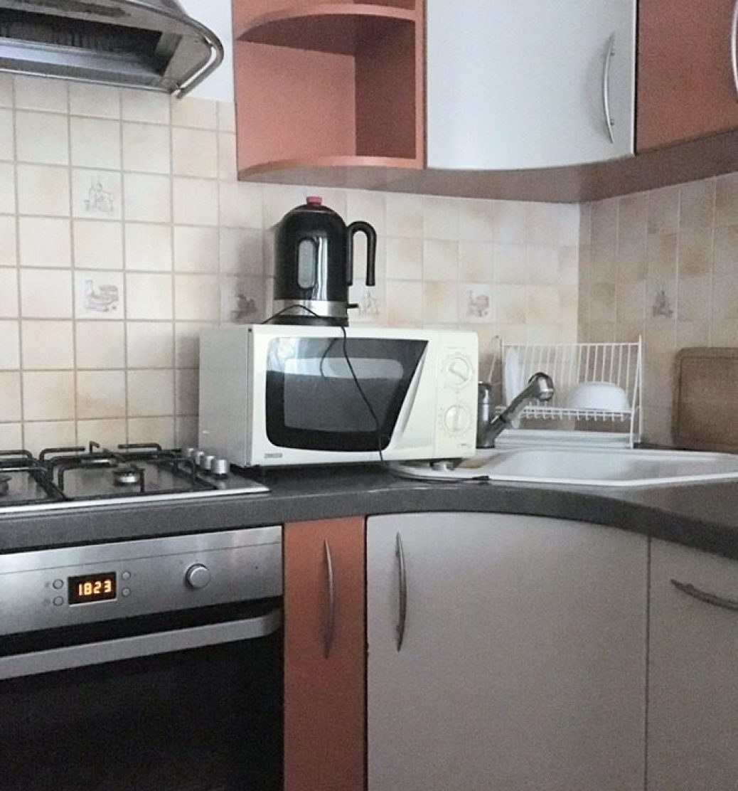 Kawalerka jest w pełni umeblowana: duża, wygodna, narożna kanapa, duży stół oraz mniejszy stolik kawowy, dwa krzesła oraz bardzo pojemna, zabudowana szafa. Posiada w pełni wyposażony aneks kuchenny: dużo wygodnych blatów, kuchenka gazowa, piekarnik, okap, lodówka. Kawalerka posiada przestronną loggię, osłoniętą koronami drzew. W pokoju znajduje się również telewizor, niewielka komoda i kilka stojących szafek (niewidoczne na zdjęciach – obecnie w lokalu mieszka jeszcze obecny lokator, stąd zdjęcia są tylko poglądowe).