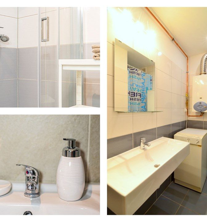 Kuchnia i łazienka wyposażone są w niezbędne sprzęty AGD.