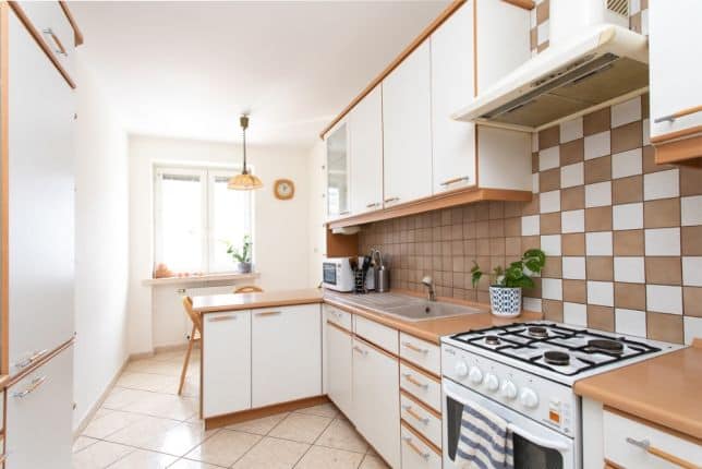 Na wyposażeniu mieszkania są m.in. : zmywarka, kuchenka gazowa z piekarnikiem oraz mikrofalówka. Oddzielna toaleta i łazienka z wanną