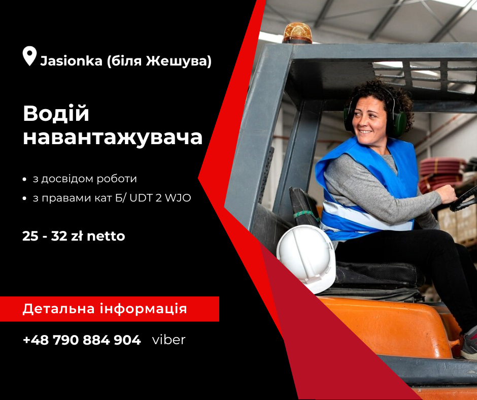 На склад у м. Jasionka (біля Жешува) потрібні чоловіки та жінки 18-45 років на посаду Оператор навантажувача (2 кат)
